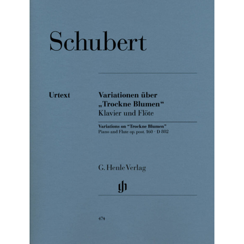 Comme dans le cas du Quintette «La Truite» (D. 667), de la «Wanderer»-Fantasie (D 760) et de son Quatuor cordes «La Jeune Fille et la Mort» (D 810), Schubert utilisa également dans ses Variations pour fl te sur «Trockne Blumen» (D 802) lun de ses lieder comme support thématique dune composition instrumentale. «Trockne Blumen» (Fleurs desséchées) est le dix-huitième lied du cycle de «La Belle Meunière» (D 795) composé au cours de lautomne 1823. En janvier 1824, avant même que lensemble des mélodies du cycle sur des poèmes de Müller ne f t publié (été 1824), Schubert composa son Thème et variations en Mi mineur pour fl te et piano et le dota dune imposante introduction.Luvre demeura sa seule et singulière composition virtuose pour fl tistes. Elle est dune incroyable difficulté et l «accompagnement» au piano est au demeurant par endroits extraordinairement périlleux. Le manuscrit de Schubert, remanié plusieurs reprises, est la seule source dautorité pour lUrtext car il est établi que lautographe a servi de modèle de gravure pour la première impression publiée titre posthume. Schubert écarta complètement lune des variations lédition Henle Urtext la reproduit en appendice, davantage titre dinformation que pour lexécution.