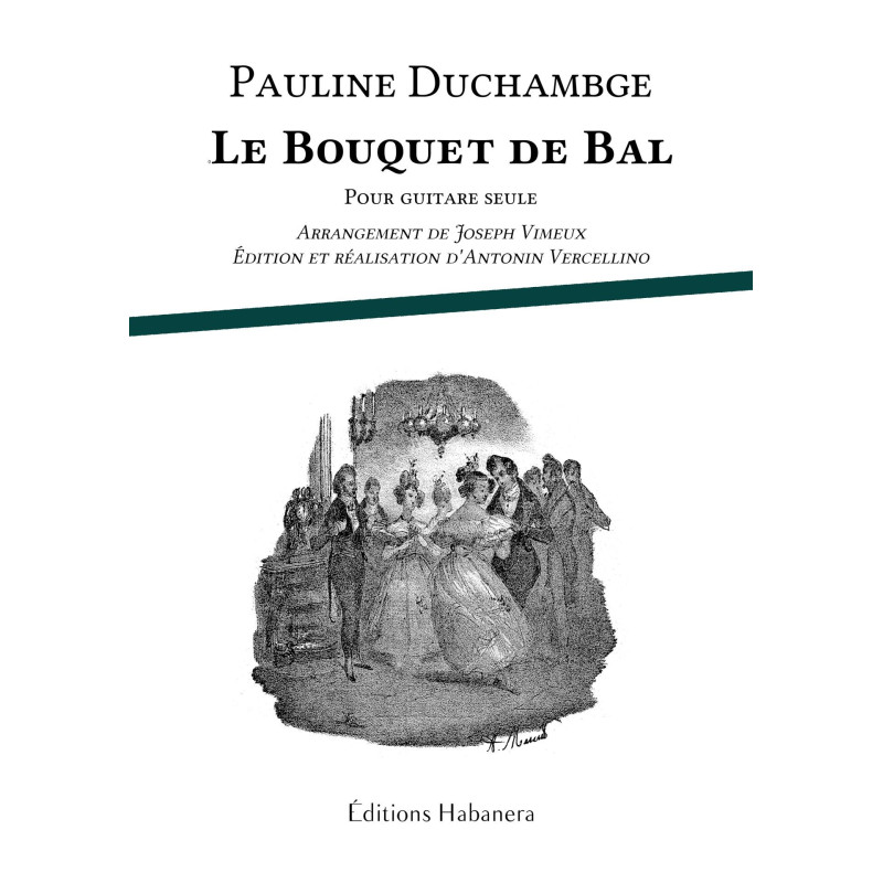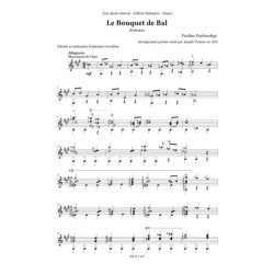Le Bouquet de bal est l'une des uvres de Pauline Duchambge (1776 - 1858) qui remporta le plus de succès. Originellement pour voix et piano, cette pièce a été de nombreuses fois adaptée pour d'autres instruments, et notamment pour guitare seule par Joseph Vimeux (1803 - 1847) en 1835. Voici une édition claire de cet arrangement, avec une réalisation précise, comprenant une biographie des artistes.