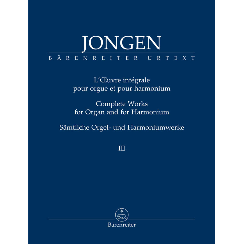 Cette première édition Urtext, qui est également la première édition complète des uvres pour orgue et harmonium de Jongen, présente les compositions en trois volumes, classées chronologiquement. Elle comprend une préface (angl./alg.) avec des notes sur la pratique d'interprétation et un commentaire critique (angl.).