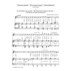 Dans de nombreux cas, la date exacte de composition et la langue originale des lieder demeurent incertaines ; certains nont été conservés quavec des textes vocaux en allemand. Cest pourquoi léditeur a décidé de diviser lédition en deux parties : les 24 lieder publiés par Dvorák de son vivant sont suivis de sept autres qui nont été conservés que sous forme manuscrite. Lordre des lieder diffère ainsi délibérément du catalogue des uvres de Burghauser et repose sur la présentation que Dvorák lui-même avait définie en concertation avec ses éditeurs.