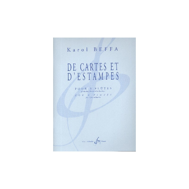 De cartes et destampes est une série de cinq pièces indépendantes pour trois flûtes, à travers lesquelles peuvent sinsérer des improvisations au piano.