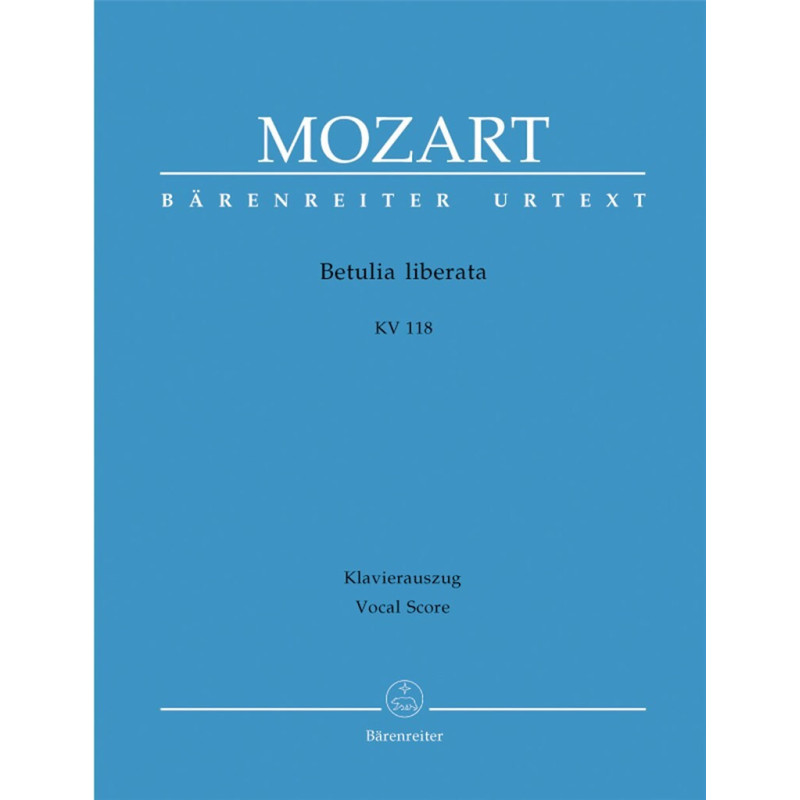 Souvent qualifié de coup de génie par le jeune Mozart de quinze ans , Betulia Liberata tolère la comparaison avec ses premiers opéras à tous égards. Mais Mozart était évidemment soucieux de distinguer entre une azione sacra et une azione teatrale dans la musique elle-même, par exemple dans les récitatifs accompagnés et l'aura sacrée du chur final. Matériel de spectacle disponible à la location.